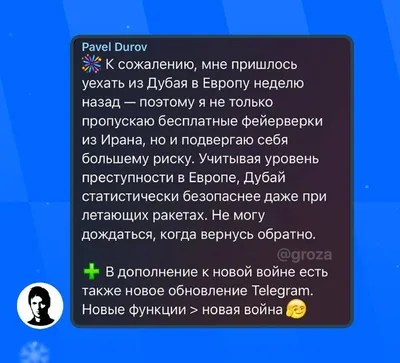 Дуров – про ситуацию в Дубае Первому коменту – 🧸 ➖➖➖➖➖➖➖➖➖➖➖ ⭐Выдачи 💬Наш чат