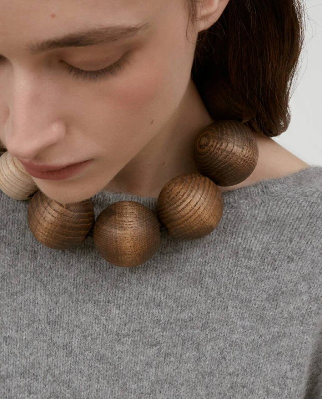 Ещё одна находка у бренда — крупные деревянные бусы из ясеня. Видела их недавно вживую на коллеге, смотрятся крайне эффектно! 📎Этот канал в MAX