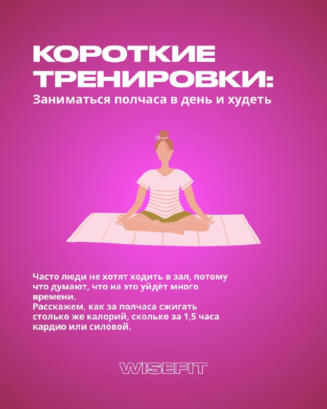 У тебя нет часа на спорт? А 30 минут найдется? 🏃♀️🔥 «Нет времени ходить в зал» — самая частая отговорка. ✅ Всего полчаса в день сжигают столько же калорий, сколько 1,5 часа кардио. Секрет — в ин