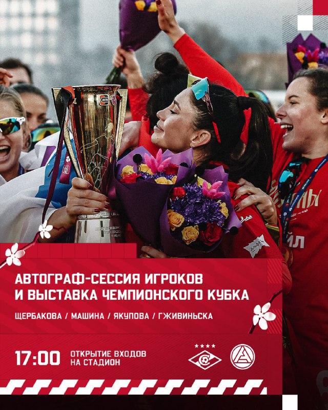 Автограф-сессия с чемпионками на «ЛУКОЙЛ АРЕНЕ» ❤️🤍 9 марта ФК «Спартак» сыграет дома с «Акроном». Матчдей будет посвящён Международному женскому дню, поэтому без нашей команды никуда! С 17:30 до