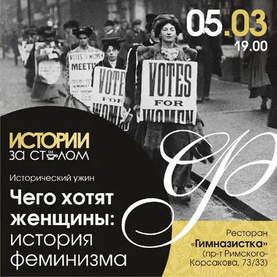 Мероприятия к Международному женскому дню💐 Можно оформить подарочный сертификат на любое из этих мероприятий💌 1️⃣Исторический ужин «Чего хотят женщины: история феминизма» 5 марта в 19.00 Ресторан