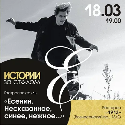 🎭Гастроспектакль «Есенин. Несказанное, синее, нежное...» 18 марта в 19.00 🧭Ресторан «1913» (Вознесенский пр., 13/2) «Несказанное, синее, нежное...». В этой есенинской поэтической строке – тема и