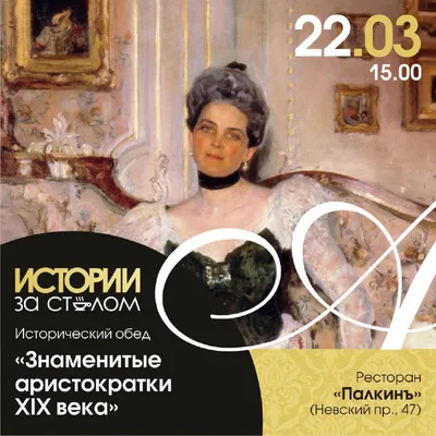 Хит❗️ 👒👗💍Исторический обед "Знаменитые аристократки XIX века" 22 марта в 15.00 🧭Ресторан «Палкинъ» (Невский пр., 47) Лектор — историк Татьяна Цветкова. ✍️Екатерина Багратион, Авдотья Голицына