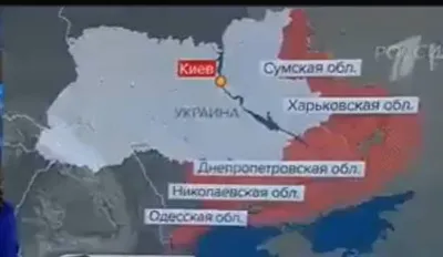 Друзья! Одесская Область захвачена врагом! Сумская, Николаевская, Харьковская - почти под ними! Караул! Всё пропало! Взгляните только на эти карты! Это первый федеральный канал в РФ, там не врут!