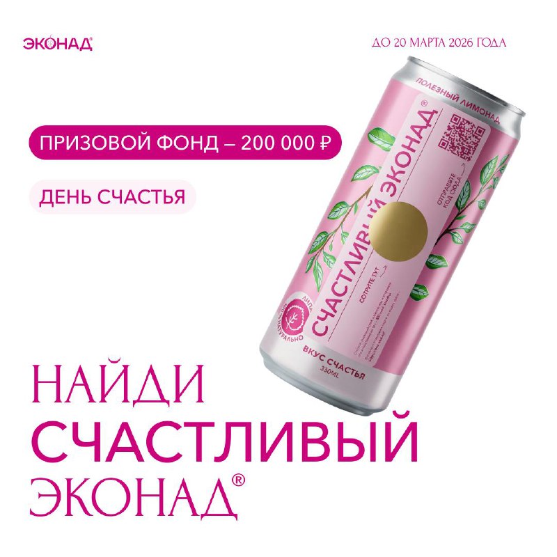 🎉Объявляем охоту за счастьем и мощным призовым фондом!😍 ЭКОНАД® приглашает принять участие в розыгрыше, приуроченном к нашему любимому празднику весны — Дню Счастья! 🥂Мы придумали первый лимонад