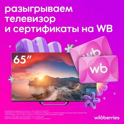 Новый розыгрыш уже в эфире — внимание на экран 📺 А он, между прочим, 65 дюймов! В этот раз мы разыгрываем смарт-телевизор Haier 65" Smart TV и ещё 4 сертификата на WB с номиналом 5 000 ₽ для приятно