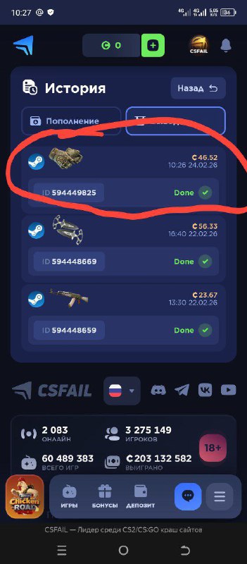 🔵 partizan039: 12 Кс фейл как обычно заносит. Вот я и собрал нож с перчатками, всего за 3 дня, спасибо) 🔵Профиль CSFAIL 🔵Автор отзыва ожидай промик в уведомлениях на сайте! 🔵 CSFAIL 🔵 TG 🔵