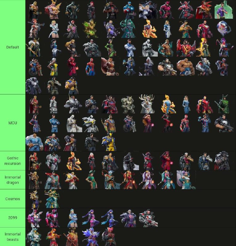 Умелец собрал все скинчики из Marvel Rivals и распределил их по тематическим коллекциям 🎮 ⚡️ — мощная работа 🗿 — а зачем?