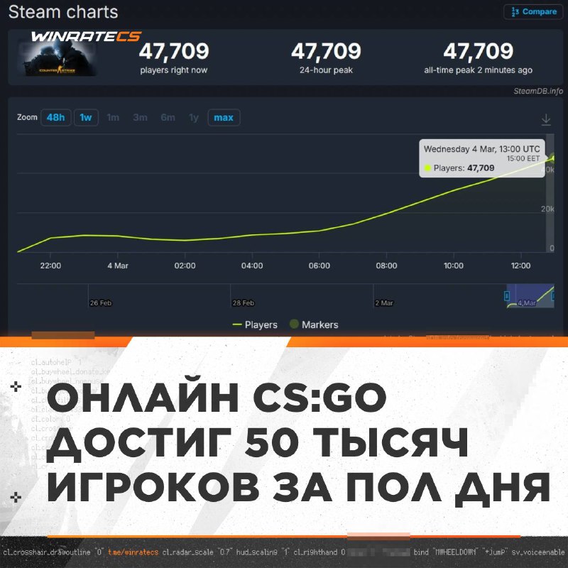 🚨 CS:GO ЗАМЕНИТ CS2? Всего за 15 часов, после возвращения 🔫CS:GO в 🎮Steam, онлайн достиг почти 50 тысяч игроков 📈 Затестили имбу? 👍/👎 🎮 Подписывайтесь на winrate