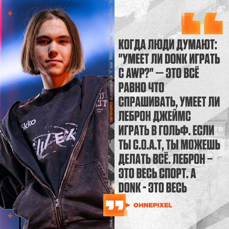 🤟Донку БЕЗ РАЗНИЦЫ, с чего играть — по словам 👨 ohnePixel, если человек G.O.A.T, то он сможет везде играть хорошо. «Если ты G.O.A.T, неважно, знает ли противник, что ты делаешь. Даже если знает — о