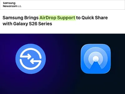Samsung добавила AirDrop! Наконец-то можно кидать файлы прямо на iPhone, iPad и Mac. «Раскатывание» функции начнётся сегодня. И первыми ее получат пользователи в Южной Корее и владельцы Galaxy S26