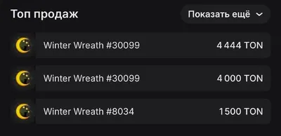 САМЫЙ ДОРОГОЙ ВЕНОК🎁 Сегодня был продан 🎄Winter Weeath #30099 за 4,444 TON (~$5500) и на данный момент это самый дорогой венок ⚡️Всего существует таких 5 экземпляров на чёрном фоне 💬Chat 🏪M
