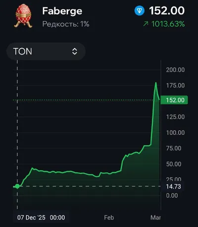 🎁EASTER EGG FABERGE — ГЕМ⁉️ 📈Данный подарок вырос за 3 месяца с 14,73 TON до 152 TON. Рост за 3 месяца составляет +1013%🔼 🤯 — я в шоке 💬Chat 🏪MRKT 🏪Tonnel 🏪Portals