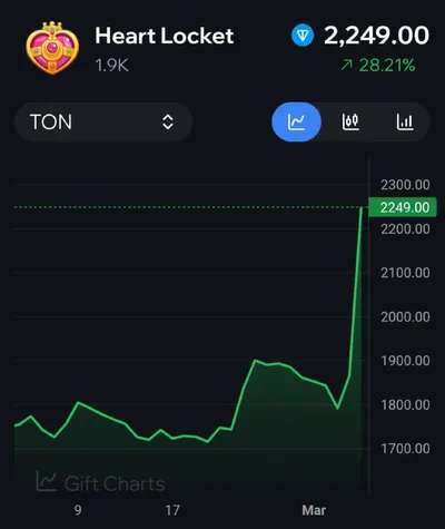 HEART LOCKER - ПАМПЯТ📈 🎁Heart Locket начали резко скупать. За месяц Heart Locket выросло с 1,720 TON до 2,249 TON. Рост за месяц составляет +28.21%🔼 💬Chat 🏪MRKT 🏪Tonnel 🏪Portals