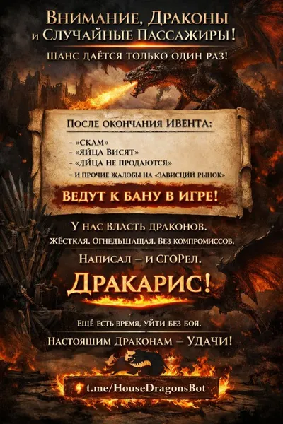 🚨 ВНИМАНИЕ, ДРАКОНЫ И СЛУЧАЙНЫЕ ПАССАЖИРЫ! 🚨 Смотрю 👀 очередь сливать яйца 🥚 так и не выстроилась 🤣 Поэтому предупреждаем ОДИН РАЗ. Шанс даётся только один. Дальше — каждый сам за себя и за сво