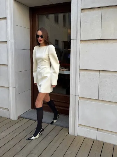 Карина Момат в гольфах Вельвет Дэ Люкс 50 делает акцент на одной из ключевых деталей сезона. Бархатистые, с матовым эффектом, они деликатно подчеркивают образ и добавляют ему глубину 🤩 🤍Подписывайт