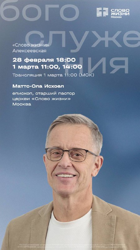 Доброе утро, дорогая церковь! Сегодня словом будет делиться епископ, старший пастор церкви «Слово жизни» - Маттс-Ола Исхоел ✨ Присоединяйтесь к прямой трансляции воскресного богослужения по ссылкам