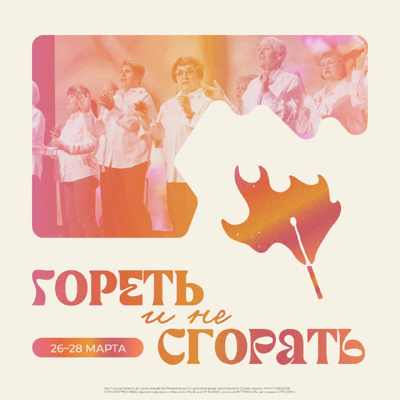 Приглашаем вас на конференцию старшего поколения «Гореть и не сгорать» 💛 Мы стараемся создать необходимые условия, чтобы люди старшего возраста переживали рождение свыше, возрастали в вере и получал