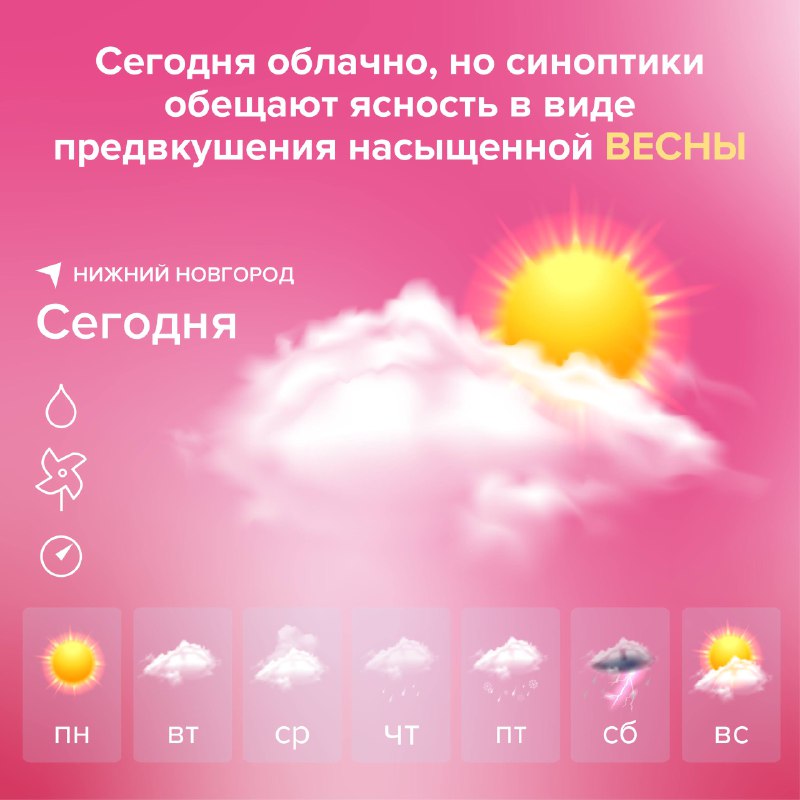 💫 Сегодня облачно, но не стоит унывать Весна уже на подходе, и с каждым днём мы все ближе к тому времени, когда природа вновь оживёт яркими красками. Готовьтесь к весне: 🩷 планируйте прогулки н