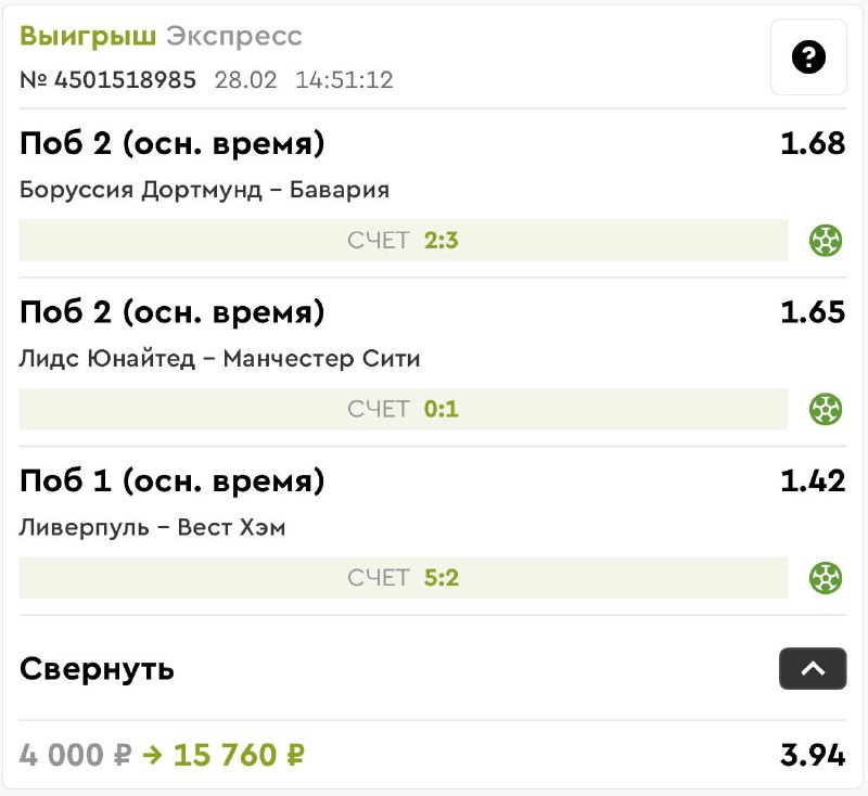 Нормальный тройник зашел Бавария в концовке отыгралась,топ матч Прогнозик делал во второй телеге