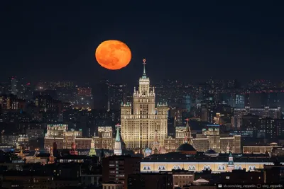 Восход полной Луны над Высоткой на Котельнической Фото: Олег Токарев Подписаться | Красивые места Москвы и Подмосковья