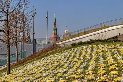 Ковры первоцветов в Зарядье 🌼 Фото: Валерий Тихомиров Подписаться | Красивые места Москвы и Подмосковья