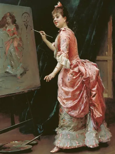 Веселая картинка на ночь 😁 Испанский художник Раймундо де Мадрасо изобразил свою любимую модель Алину Массон в мастерской во время перерыва: пока он отвлекся, она подошла к холсту, чтобы рассмотреть