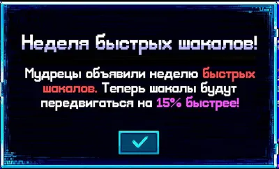 Мудрецы объявили неделю быстрых шакалов! 😀 В эту неделю шакалы будут передвигаться на 15% быстрее! Победит только тот, кто будет быстрее! Сервер М47 | Сайт сервера