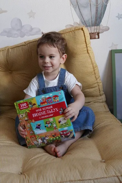 Дома просто так не сидим, достала Матвею одну из новых книг. Сделали для вас, как всегда, свой фирменный обзор, и пошли открывать окошки ↩️ Тут у нас «Мой первый виммельбух с окошками» от Робинс. У М