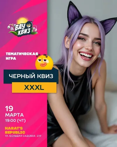 🔞 19 марта (ЧТ) 19:00 - Черный квиз XXXL. Играем в Harat’s Republic (ул. Большая Садовая, 239) Начнем с интеллектуального прогрева, чтобы убедиться, что ваш мозг готов к смелым и абсурдным вопросам