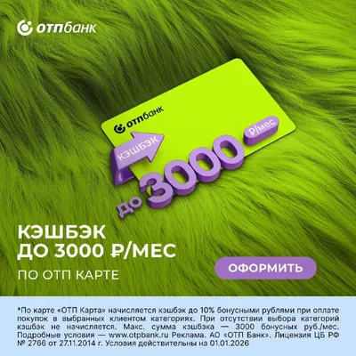 💳 ОТП Карта: кэшбэк до 10% и доход 13,5% годовых на остаток 1. Переходим на страницу акции и заполняем онлайн-заявку на выпуск карты. 2. Получаем готовую карту (доставка или в отделении) и выбираем