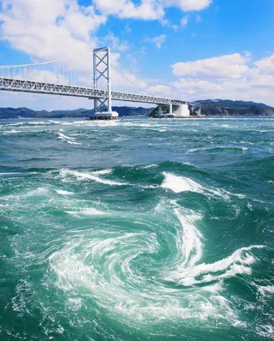 Наруто - это круглая штука с завихрениями, плавающая в рамене, а названа она была в честь водоворотов Наруто на фото. Мост и город рядом с водоворотами - это тоже Наруто, так что найдёте на карте без