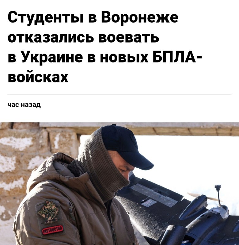 Воронежские студенты отказались воевать в беспилотных войсках На одном из собраний в Воронежском госуниверситете инженерных технологий декан Алексей Скрыпников обрушился на учащихся с упрёками в отсу