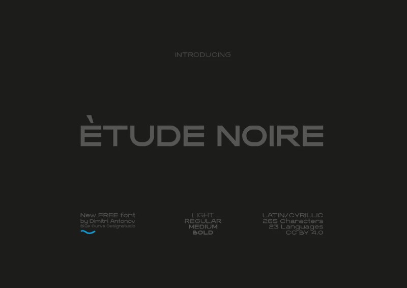 Шрифт "Etude Noire" by Dimitri Antonov Стильный шрифт, содержащий в себе 4 уникальных начертания, которые подойдут как для постеров и заголовков, так и для мелкого текста. Шрифт бесплатен для личных
