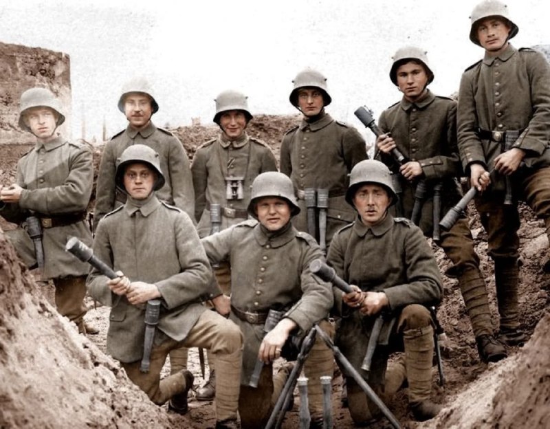 Немецкие штурмовики с ручными гранатами, март 1918 года.
