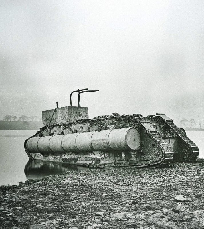 Испытания первого образца танка-амфибии Mark IX, 1918 год.