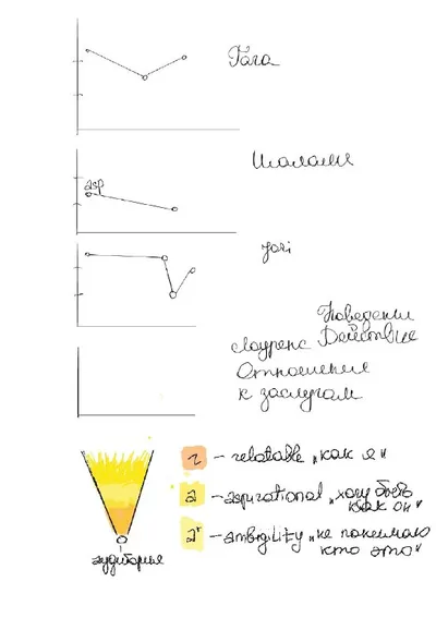 черновик новой схемы шкала эмпатии. От «она такая же как и я» до «я не понимаю кто это». хорошо при анализе селебрити и личных брендов, но может и к героям удастся применить