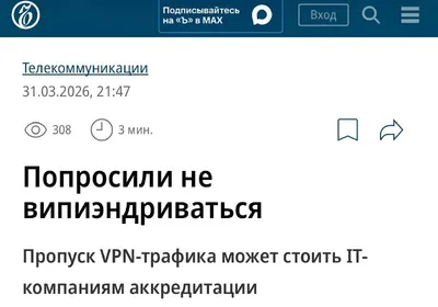 IT-компании могут лишиться аккредитации, если их сервисы будут доступны через VPN — об этом пишет Коммерсантъ. Напомним, что статус аккредитованной IT-компании дает разработчикам в том числе ИT-ипоте