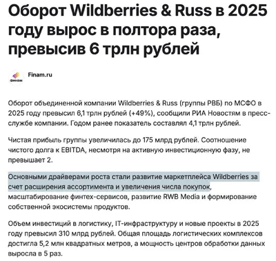 ⚡️⚡️Сколько WB заработал в 2025 году? 175 млрд чистой прибыли Основными драйверами стали "развитие WB за счет расширения ассортимента и увеличения числа покупок" 😆
