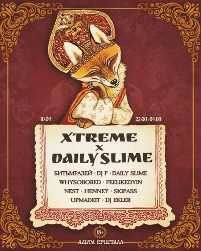 XTREME × DAILY SLIME × ДИСКОКЛУБ 10.04 22:00-04:00 АЛЬФА КРИСТАЛЛ САМОКАТНАЯ УЛИЦА 4с11 18+ Билеты 🎟️