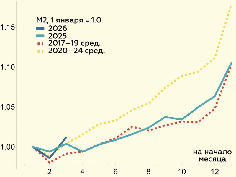 ❔Денежная масса в феврале: где налоги? 💡Будут в марте • В феврале динамика денежных агрегатов оптически оживилась из-за сдвига срока уплаты февральских налогов на первый день марта • В результате