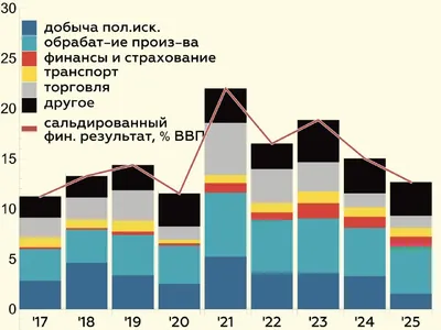 Прибыли в золотые годы 💡По итогам 2025 г. сальдированный финансовый результат компаний* в отношении к ВВП оказался таким же, как в среднем в 2017–19 гг., – около 13% ВВП • Нормализация привела саль