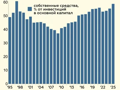 ДКП работает 💡Доля собственных средств в инвестициях в основной капитал по итогам 2025 г. оказалась максимальной за историю наблюдений (за исключением 1997 г.) и составила почти 59% @xtxixty