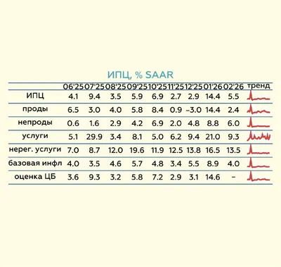 Инфляция в феврале: вылетела из Дубая к цели • Наша итоговая оценка февральских текущих темпов составляет 5.5% SAAR* 💡Устойчивым компонентам** инфляции удалось приблизиться к цели после январского