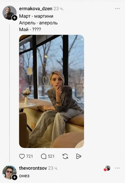 БлогиИсследование проблем современной женщины (в том числе по материалам таргета инсты). Реклама, вопросы: @en_ze Донаты по любви: 2202206818514486 Всякое — @leprosoriumcentral