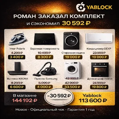 🏠 Роман обставлял кухню и дом техникой Открыл магазин, накидал корзину: 🔵 Утюг Polaris ⬛️ Варочная поверхность Indesit 🖤 Стиральная машина Beko ❄️ Кондиционер DEXP ⬛️ Вытяжка KRONA 🔘 Пылесос Sam