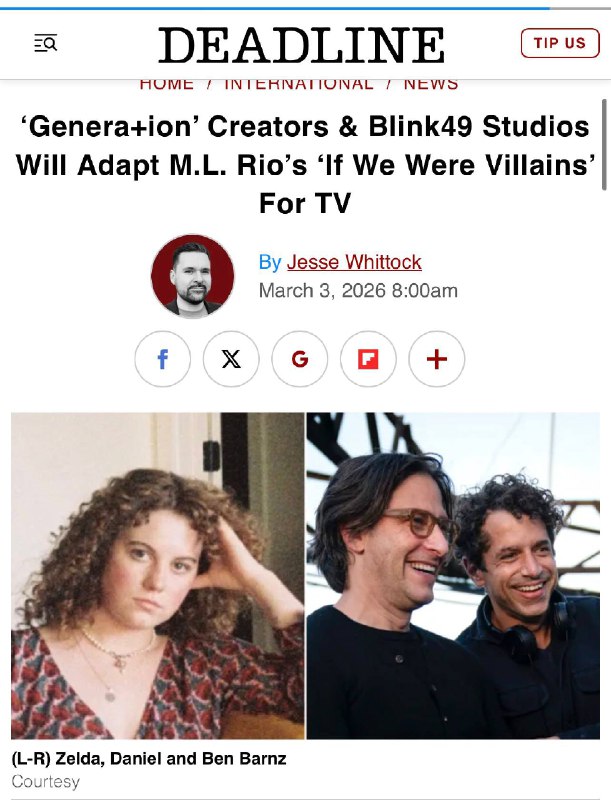 🎬 Создатели сериала «Genera+ion» и Blink49 Studios работают над экранизацией романа М.Л. Рио «Словно мы злодеи» в формате сериала. Семеро студентов. Закрытая театральная академия. Любовь, дружба и