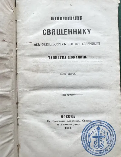 Рекомендации священнику для совершения таинства покаяния. 1861 год. Отдельная глава - как исповедовать тупых. Священник должен предварительно разобраться, от чего именно происходит тупость. Вари