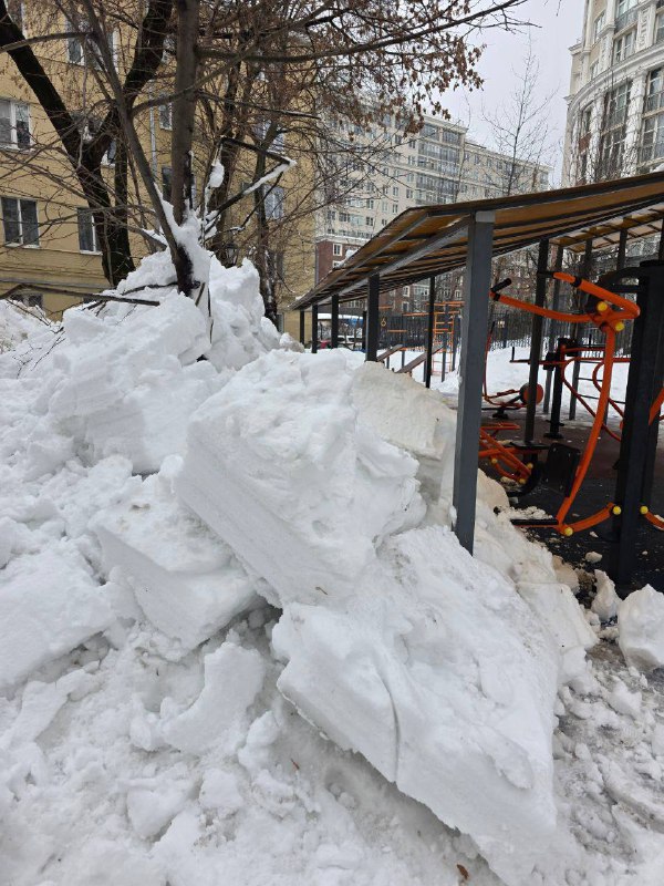 Сейчас у дома Павла Андреева 28/2 на детской площадке с нечищенной крыши сошла огромнейшая тяжелая лавина снега, добавилось к куче, которая лежит тут пол зимы и на которой играют дети(некоторые без пр