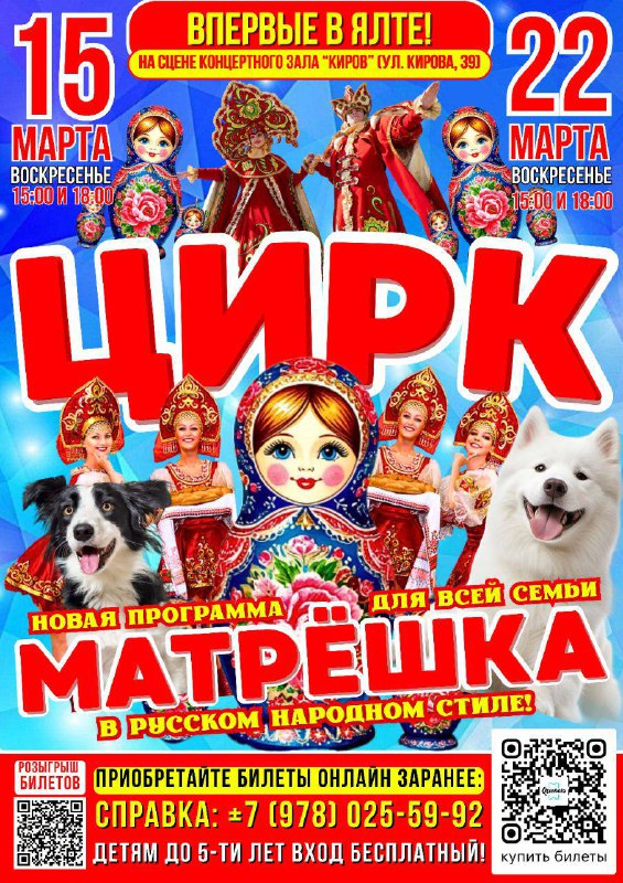 🎪СЕНСАЦИЯ! ЦИРК "МАТРЁШКА" В ЯЛТЕ!🎊 😍ВПЕРВЫЕ В ЯЛТЕ! 🎪ЦИРК "МАТРЁШКА" 💈- с новой Шоу-программой в русском народном стиле! Яркое представление для всей семьи! 👪 ✌Не пропустите! Только 2 ДН